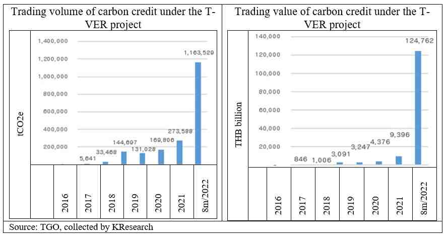 However, compared to 257.77 million tCO2e2 of Thailand’s latest greenhouse gas emissions in 2021, the trading volume of carbon credit under the T-VER project is still low, accounting for 0.1% of total greenhouse gas emissions in 2021 and accounting for 14.2% of total certified carbon credits of 13.5 million tCO2e.